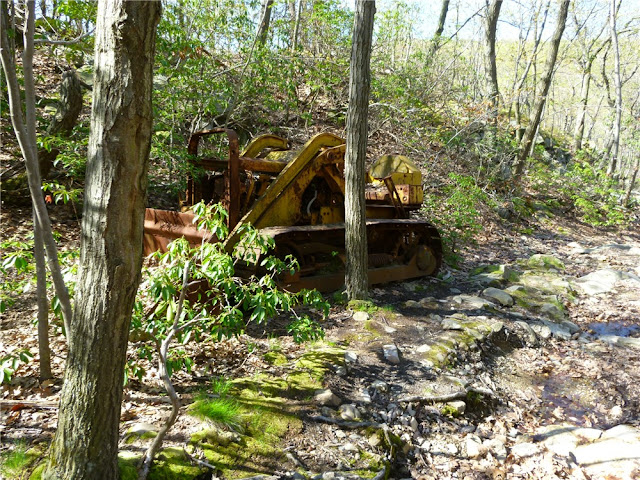 The intersection with the blue-blazed trail is affectionately named "Dozer Junction" for the old abandoned bulldozer that sits off to the side.  Remember this intersection for later if you decide to do the shortened version of this hike.