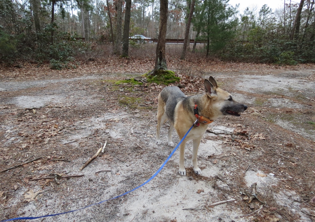 | Eager to get off that sand road and on to a trail - she knows where to go! |