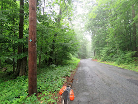 Now it's road walking on Van Syckles Road with considerably more traffic than when we were on this road earlier.  Plus that hot, hot sun.  We stopped in every little bit of shade for a break and a drink of water.