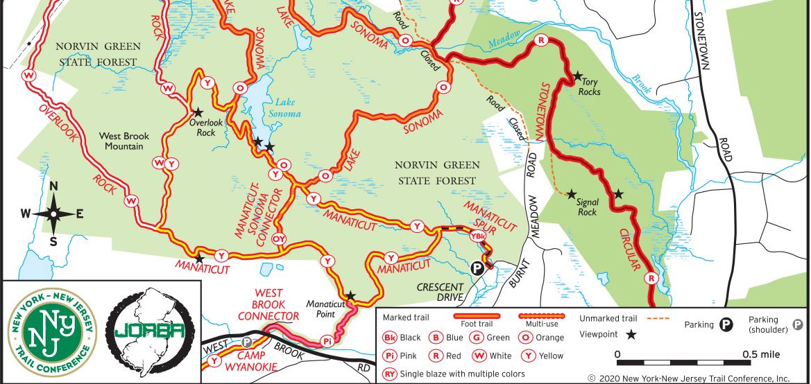 Hiked together with Norvin Green State Forest, NJ - Camp Wyanokie and Manaticut Point Loop - 8.1 miles (2.3 miles away)