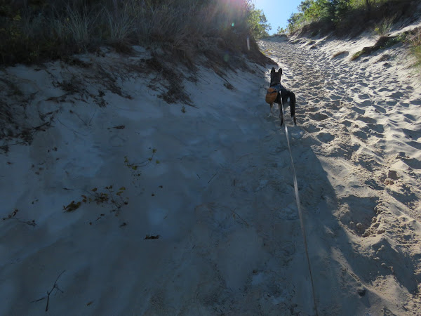 | Heading up to the dunes for the challenge. This was MUCH steeper than it looks in the picture. |
