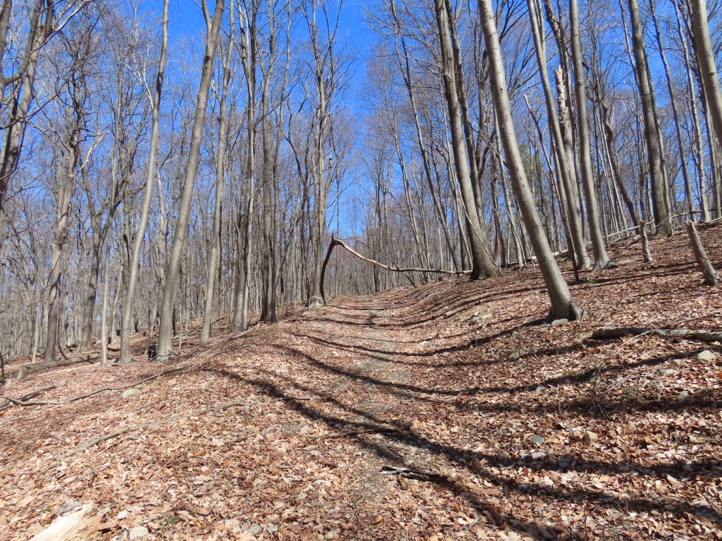 | Just before the trail starts to ascend up to Mombasha Point, the woods road I would be coming back on crosses over. I looked to the left to see how clear it looked and was pleasantly surprised to see that it looked completely clear. I would just have to check out the other end when I got there. |